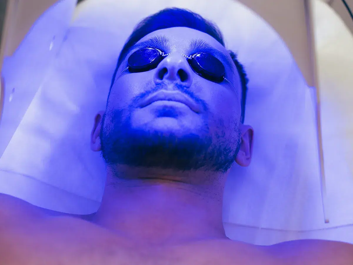 - Eye Protection: Keep your eyes safe from bright lights. Wear eye shields during the session or goggles (provided).