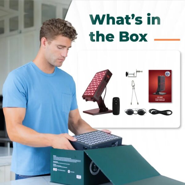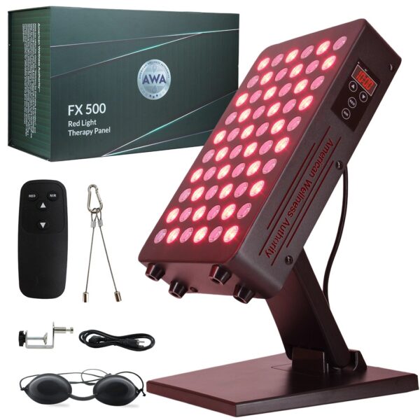 The Fx Series: Introducing the Harmian FX500 Red Light Therapy Device. With its built-in stand, enables an ideal 60-degree angle for simple treatments. Control your device easily with the included remote. Measure your sessions with the embedded timer feature. This panel comes with 60 LEDs, Half are Red Light LEDs & the other half are Near Infrared Light Therapy LEDs. The panel’s face measures 6-12 inches and is sure to please.